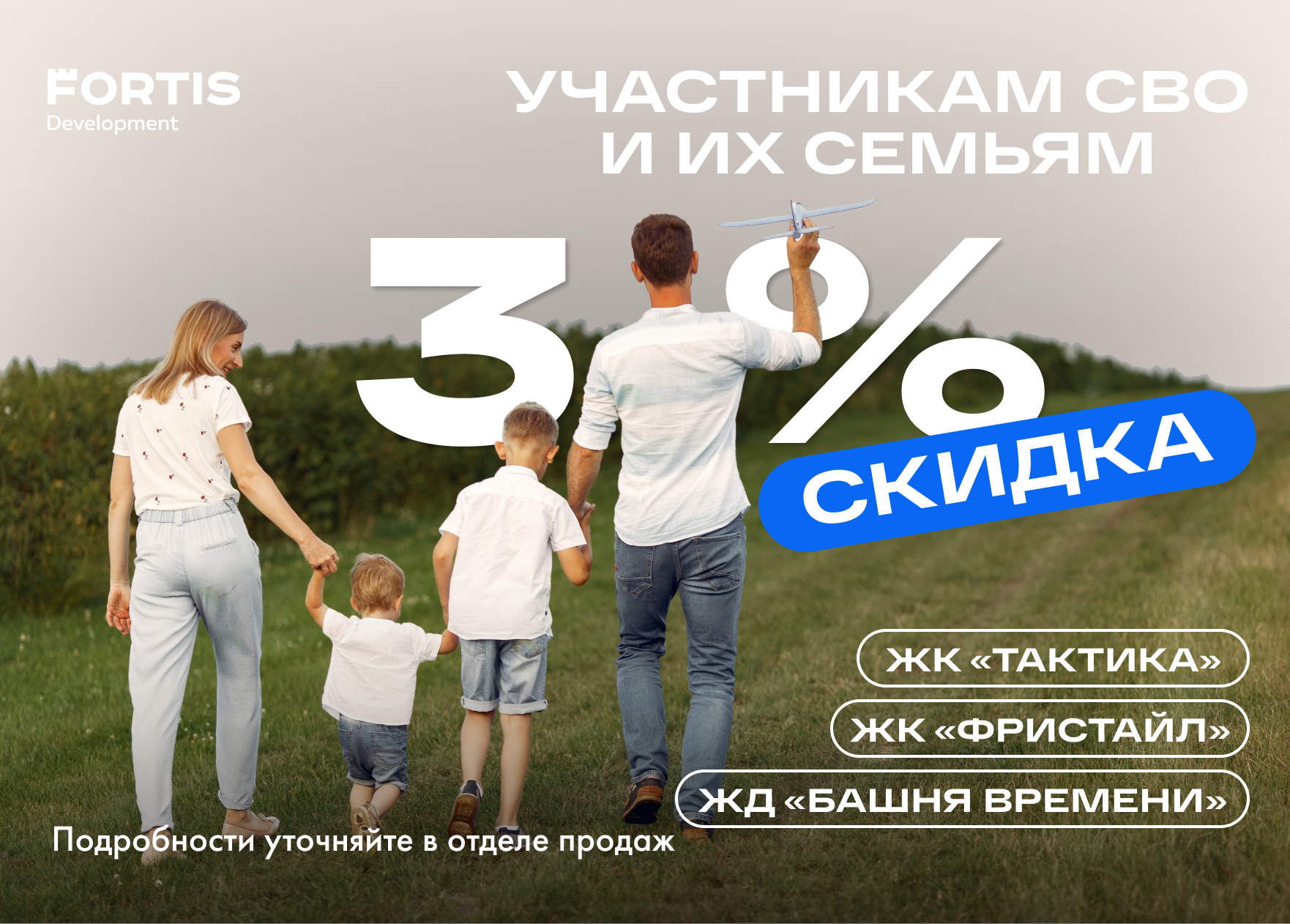 В это время года мы рады поддержать наших героев — участников Специальной Военной Операции, и их близких. В течение этого месяца мы предоставляем скидку 3% на все наши проекты!